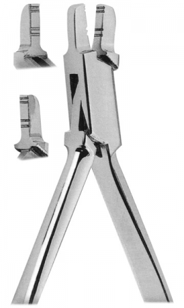 Lingual arch pliers used to form double and triple back bends in 0.7mm. (.028') or 0.9mm. (.035') wire for insertion in lingual sheaths